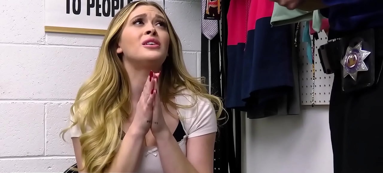 狂热的金发少女小偷被商店保安指交和性交